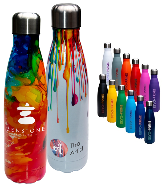 Want your brand to stand out in the hands of your customers? The Eevo-Therm Full Bleed is the ultimate full coverage branded bottle, engineered to keep drinks hot for 12 hours and cold for up to 24 hours. Eye catching design meets everyday functionality, it’s the perfect way to make a lasting impression.