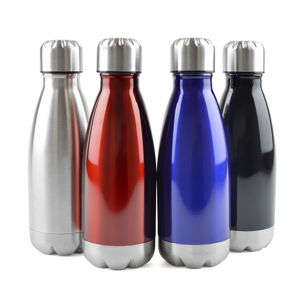 500ml single walled, stainless steel drinks bottle with silver screw on lid, silver base and coloured body. A handy promotional giveaway, great for those on the go. BPA & PVC free. Available in amber, black, blue, green, purple, red and silver.
