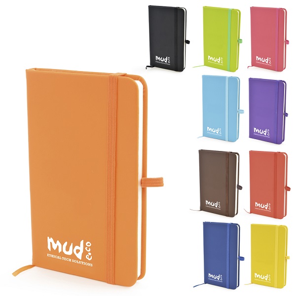 A6 PU soft fi nish 80 page lined notepad with elastic closure, book
