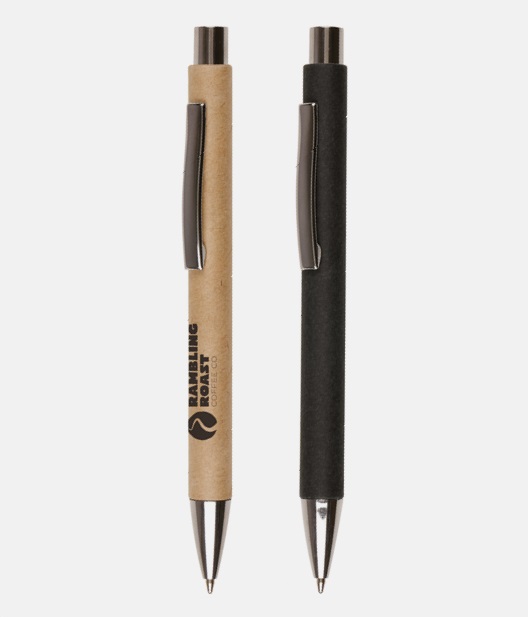A new version of a best-selling push action ball pen. Now with a paper card barrel, recycled ABS chrome trims and a matching metal clip.