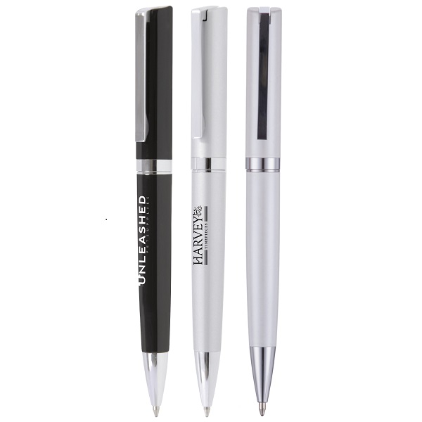 A substantial, twist action ball pen with clean lines and a hinged clip.