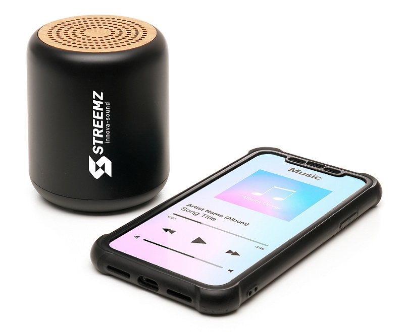 A Bluetooth speaker crafted with Recycled ABS shell and speaker with an elegant bamboo speaker top. This Bluetooth speaker has 1200mAh capacity and includes a 30cm USB-A to USB-C charging cable and manual. The large body gives ample space for big and bold branding.