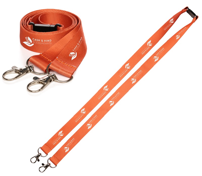 Double trigger clip RPET lanyard with full colour dye or sublimation design to one or both sides(same design). Features two trigger clips on either side and safety break.