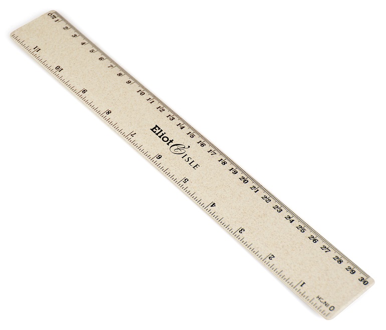 30cm (12im) ruler made from 30% wheat fibres and 70% PP plastic. Available in natural.