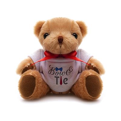 Crafted with polyester fabric and red ribbon neck tie, this 13cm teddy bear comes with imo...